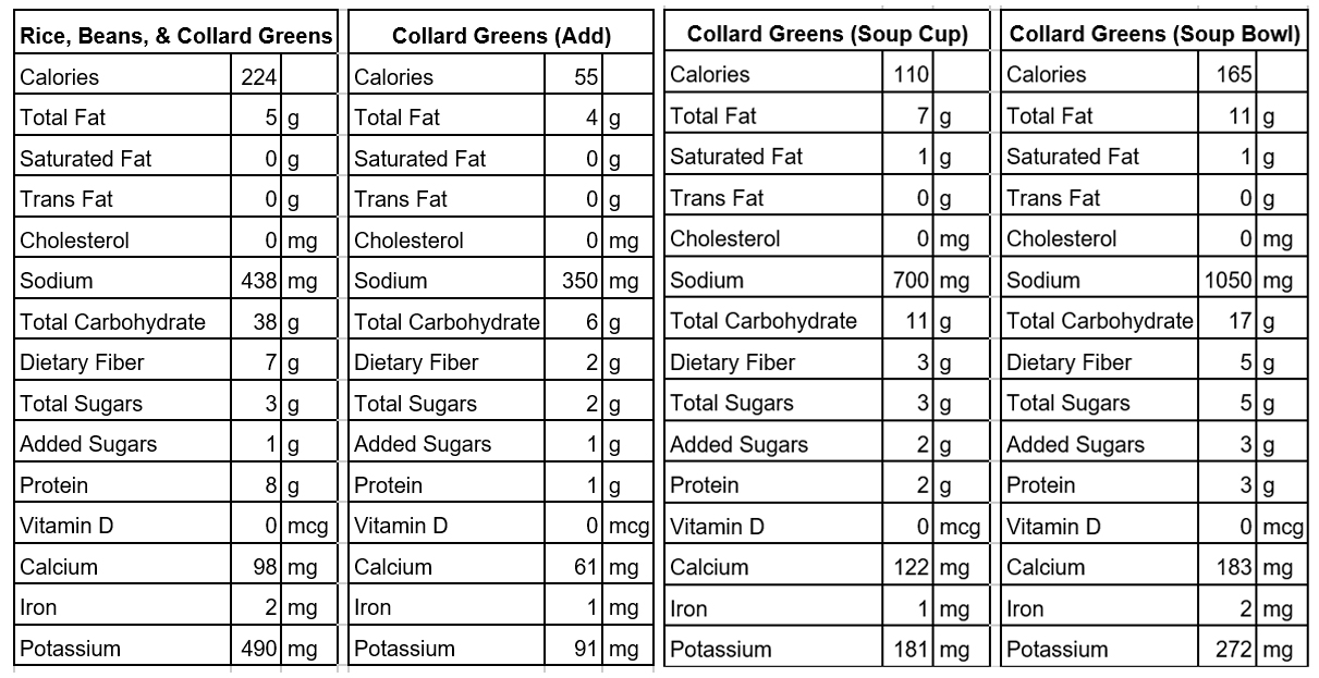 Cafe Yumm! Collards Nutrition Facts