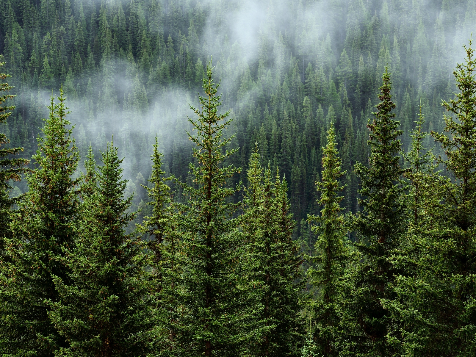 An aerial photo of a dense forest
