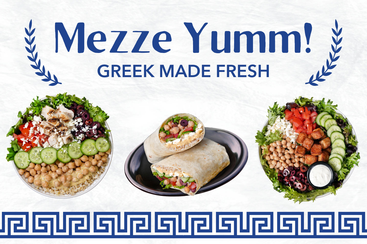 Our new Mezze Yumm! menu will transport you to the Mediterranean with classic Greek-inspired flavors.