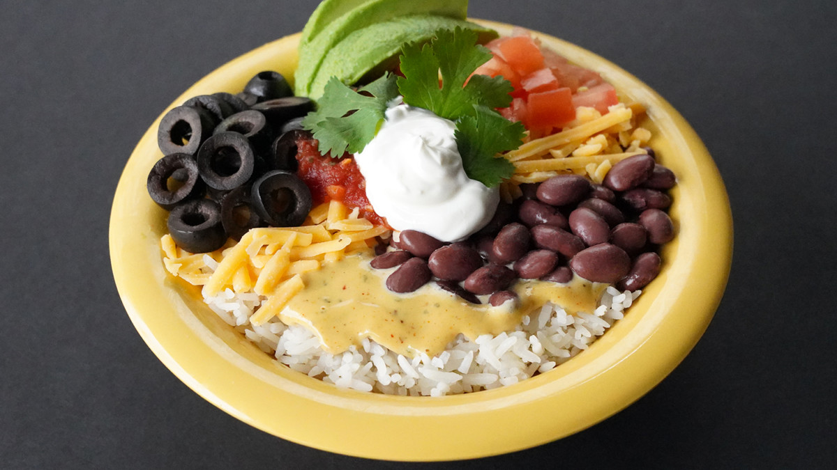 Choose a different dressing or salsa in place of Yumm! Sauce, or go vegan by substituting the sour cream and cheddar cheese with extra avocado, carrots, and/or cabbage. With any Yumm! Bowl®, you are welcome to choose between premium Thai jasmine rice and our certified organic brown rice.